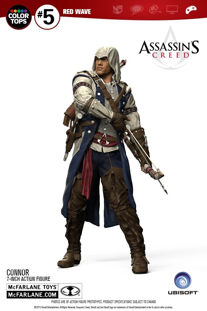 McFarlane Color Tops Figur von Connor im klassischen 7-Inch Format aus dem erfolgreichen Videospiel „Assassin’s Creed III“. Connor kommt inklusive Bogen als Zuzbehörteil.