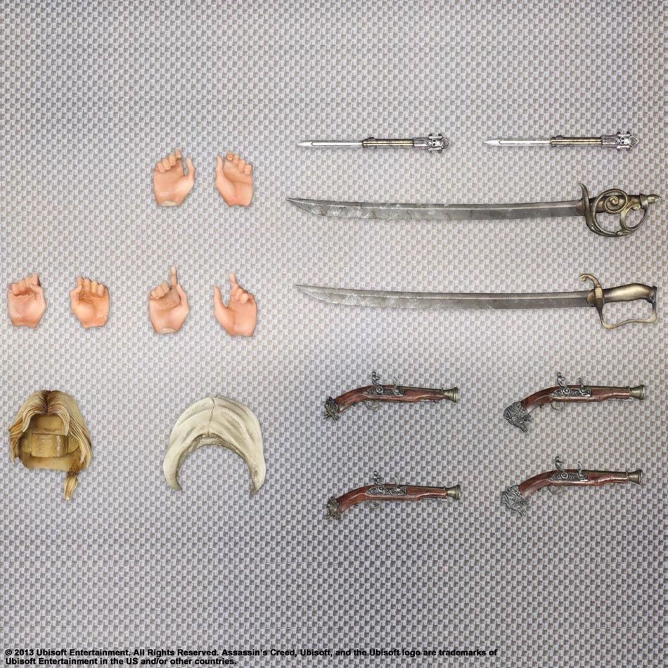 Neben der liebevollen Gestaltung zeichnet sich diese Assassin’s Creed Figur von Edward Kenway durch ein üppiges Equipment aus: Austauschhände, Dolche, Degen, Haarteile, abnehmbare Kapuze, Schusswaffen und weiteren Zubehörteile.