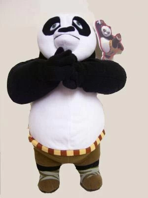Plüschtier vom Panda-Bär Po in der Hand-Faust Pose.
