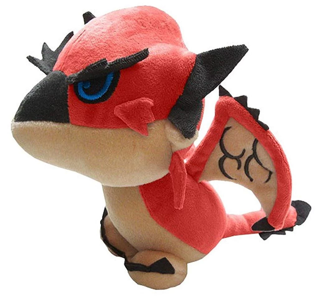 Liebevoll gestaltete Plüschfigur von Rathalos zum Videospiel Monster Hunter World.