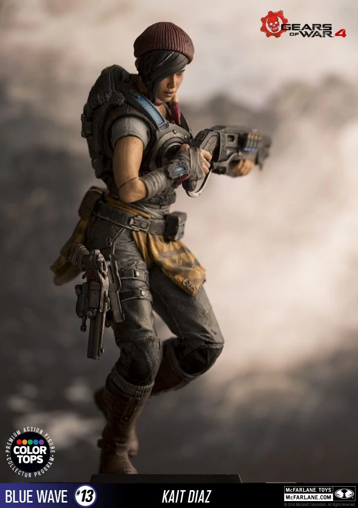 McFarlane Color Tops Figur von Kait Diaz im klassischen 7-Inch Format aus dem erfolgreichen Xbox One Videospiel „Gears of War 4“. Kait Diaz kommt inklusive Gnasher Shotgun and Boltok Pistole als Zuzbehörteile.