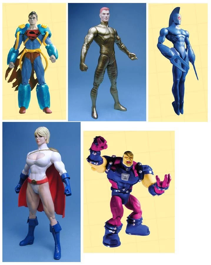 Set mit allen 5 Figuren der Infinite Crisis Series 1: Mongul, Alexander Luthor, Earth Prime Superboy, Power Girl und Omac.
