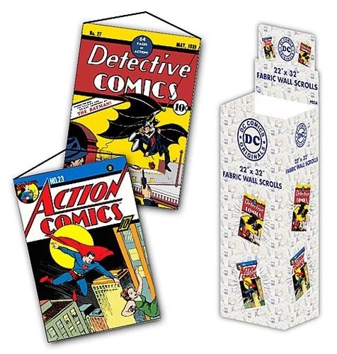 Zwei legendäre Titelbilder von DC Comics: „Detectiv Comics #27“, in dem erstmals Batman auftrat und „Action Comics #23“, eines von Supermans ersten Comicheften! Beide Titelbilder als großformatiges Textilposter.