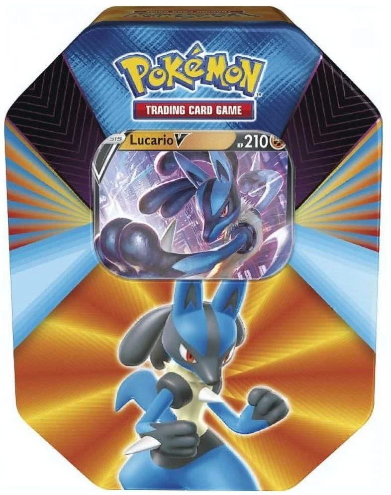 Pokémon Tin-Box der Erweiterung Lucario-V in Deutsch. Ein weiteres Pokémon-V ist da! Wähle die uralte Macht von Lucario-V in der Pokémon-Sammelkartenspiel-Tin-Box V-Kräfte. Jede dieser fantastischen Tin-Boxen enthält ein mächtiges Pokémon-V, das den Kampfgeist und den Ehrgeiz hat, in deinem nächsten Pokémon-Kampf jede Herausforderung zu meistern und alles zu gewinnen!