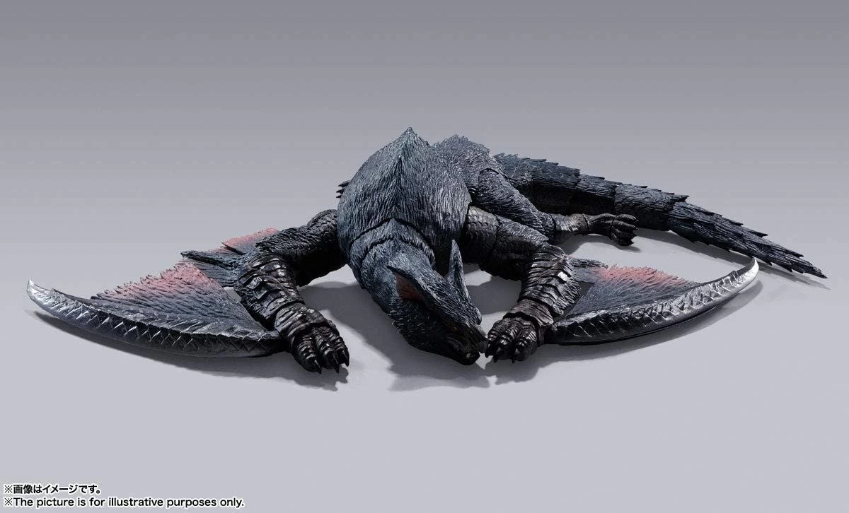 Nargacuga, eine fruchteinflössende Kreatur ausMonster Hunter World, endlich als bewegliche 30cm-Figur. Die S.H. MonsterArts-Serie, bekannt für realistische Details, ist stolz darauf, die erste Figur aus der Monster Hunter-Serie zu veröffentlichen. Eine Vielzahl an beweglichen Gelenken, inklusive abnehmbaren Schwanz, lassen diese Figur zum Leben erwecken und eine unglaubliche Anzahl an Szenarien lassen sich dadurch darstellen.Diese Figur wird inklusive diverser Körperteile, einem Jäger und einer Base geliefert.