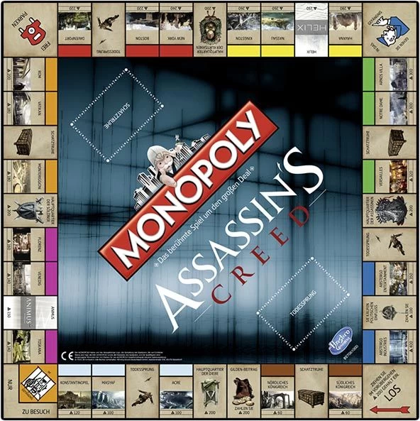 Zeigen Sie ihre Assassin’s Creed Monopoly Parkour-Fertigkeiten und investieren, verhandeln und feilschen Sie sich zum Sieg. Welche Strategie werden Sie anwenden? Versuchen Sie, soviel, wie möglich zu sammeln, oder Ihren Fokus lieber auf bestimmte Zieleobjekte zu richten? Schleichen Sie eher um das Spielfeld und schlagen nur im geeigneten Augenblick zu, oder ist Ihre Taktik direkterer Natur? Die Geschichte ist unser Spielfeld. Machen Sie mit.