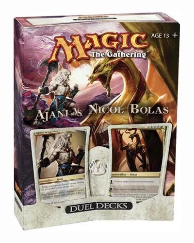 Das Duel Deck Ajani vs. Nicol Bolas in Englisch enthält 2 spielfertige 60-Karten-Decks, 5 Rare + 1 Mythic-Rare Sammelkarten in jedem Deck. Dazu 2 Deckboxen + 3 Token Cards, 1 Strategiehilfe und 1 Spieleinsteigerhilfe. Alle Karten im Deck sind schwarzrandig und turnierlegal.